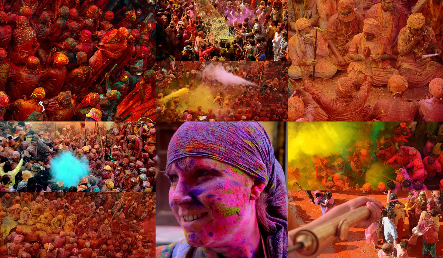 Today the famous lath mar Holi is celebrated in Barsana. Here, men from Nandgaon, the land of Krishna come to play Holi with the girls of Barsana and hope of raising their flag over ShriRadhikaji's temple. But, instead of colours they are greeted with sticks by the gopis. Hence, this Holi gets its name – LathmaarHoli. Smart enough, men come fully padded as they are fully aware what kind of welcome awaits them and also the fact that they are not allowed to retaliate on that day. In this mock battle of sorts, they try their best not to be captured. The unlucky one's however, are forcefully led away and get a good thrashing from the women.